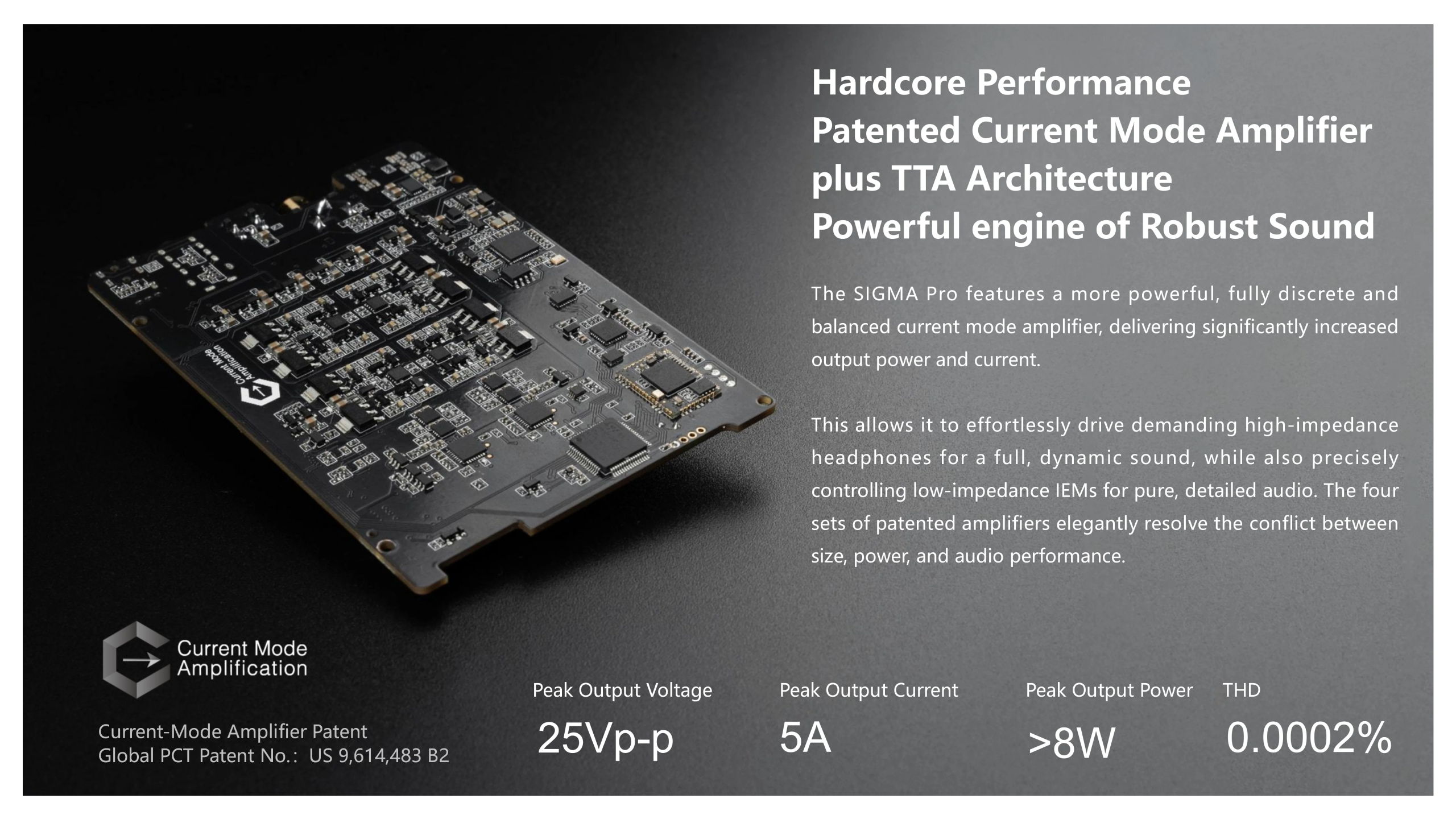 • Patented Current Mode Amplifier with a fully discrete