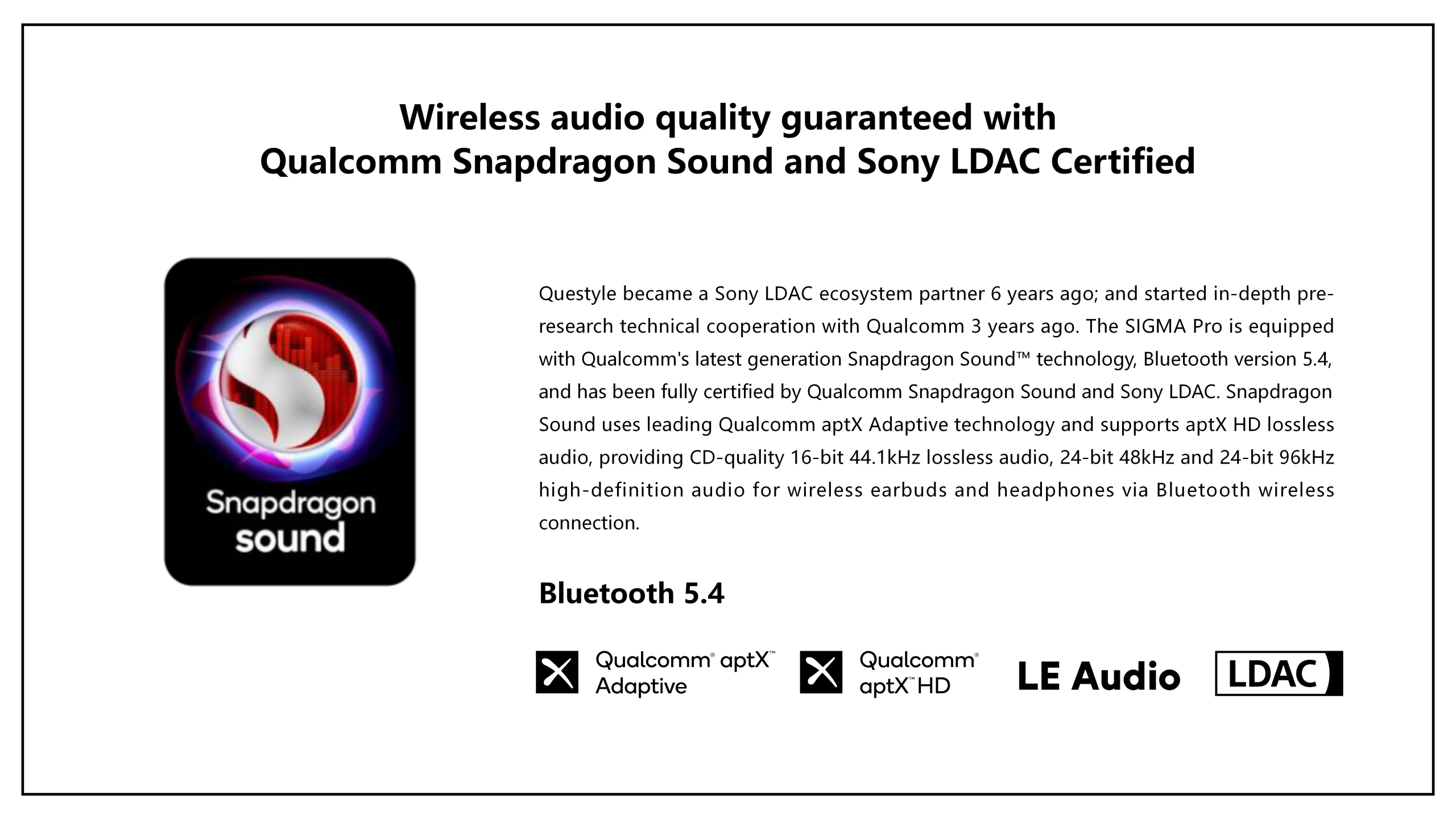 • Qualcomm Snapdragon Sound and Sony LDAC, enabling wireless enjoyment of lossless audio.